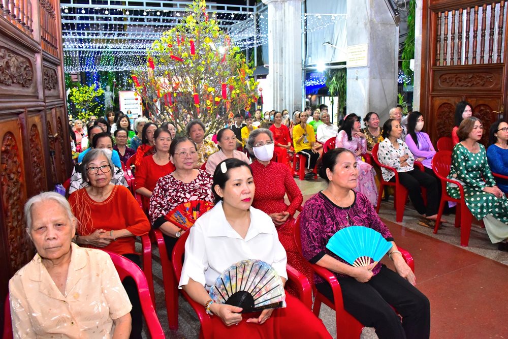 Sau cuộc rước, bà Maria Nguyễn Thị Thường, Chủ tịch Hội đồng Mục vụ, thay lời cộng đoàn bày tỏ tâm tình tri ân và chúc Tết cha chánh xứ Martinô.