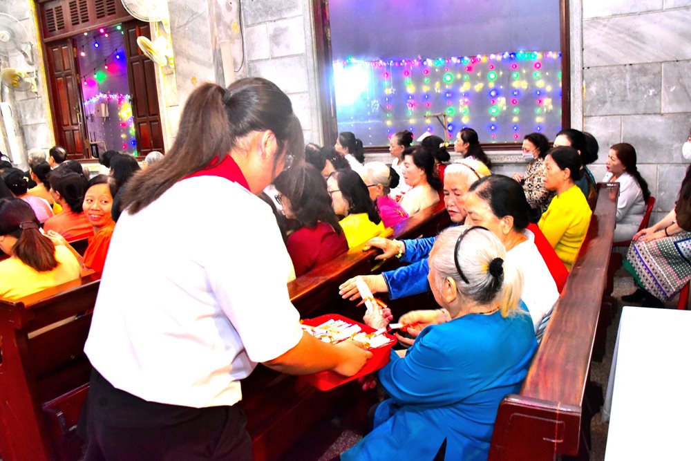 Trước khi ban phép lành cuối lễ, cha Martinô làm phép lộc thánh. Đại diện các huynh trưởng và giáo lý viên trao tận tay mỗi người tham dự một câu lộc thánh. Mỗi tấm lộc kèm theo những con số tự nhiên; ai có dãy số trùng với số ghi trên phần quà sẽ được nhận phần thưởng do chính cha chánh xứ trao tặng. Mọi người chăm chú nhìn vào những con số trên tay và vỡ òa niềm vui khi trúng thưởng.